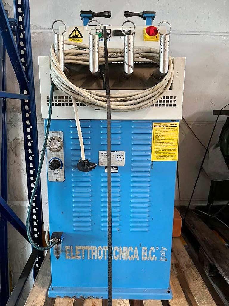 Various machines for processing, walking, steaming, and preforming uppers and lasts for the shoe manufacturing industry are available. 1) Moccasin upper steamer Elettrotecnica 232/S, year of manufacture: 2008, tank capacity: approx. 15l, heating time: approx. 8min, power consumption: 6kW, machine dimensions X/Y/Z: approx. 600mm/450mm/950mm, weight: approx. 70kg. 2) 2x aluminum last preforming machines Nova M-BO, year of manufacture: 2002, max. temperature: 200°C, machine dimensions X/Y/Z: approx. 950mm/700mm/1350mm, weight: approx. 250kg. 3) Upper walking machine Ring-Leibrock Wasch 3-2K, year of manufacture: 2016, stations: 2, max. temperature: 120°C, stroke rate: 25/min, machine dimensions X/Y/Z: approx. 1300mm/950mm/1700mm, weight: approx. 420kg. 4) Upper preforming machine Irleh IR-13/P, year of manufacture: 2005, max. temperature: 160°C, machine dimensions X/Y/Z: approx. 1400mm/900mm/1600mm, weight: approx. 400kg. 5) 2x upper preforming machines RKK Kölsch H-BÜ, year of manufacture: 2007, max. temperature: 180°C, machine dimensions X/Y/Z: approx. 900mm/700mm/1300mm, weight: approx. 210kg. An on-site inspection is possible.